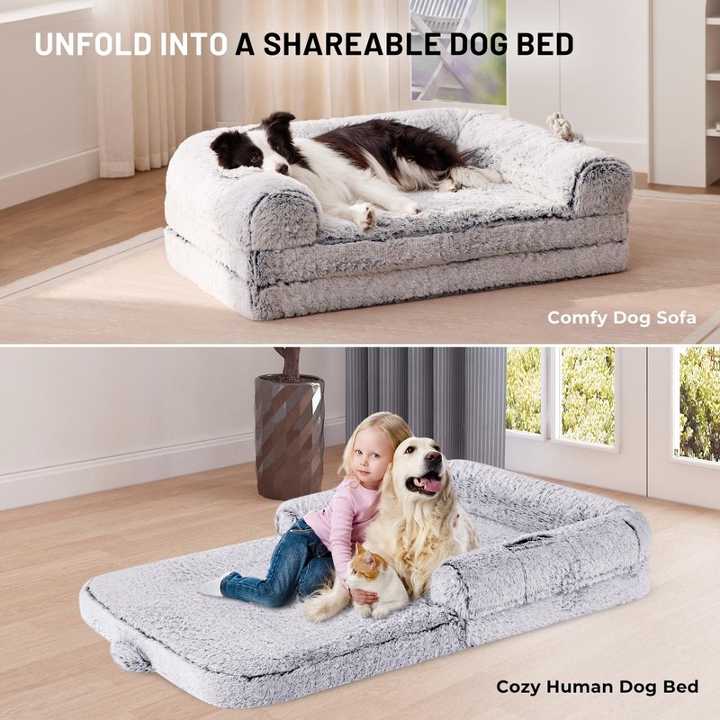 - Foldable Dog Sofa: This human dog bed folds into a dog sofa. Adult dog bed size is 43"x35.5" after folding, send a blanket of size 50"x60" in the same color, suitable for large dogs. Kids dog bed size is 38"x27" after folding, send a blanket of size 40"x60" in the same color, suitable for medium dogs.