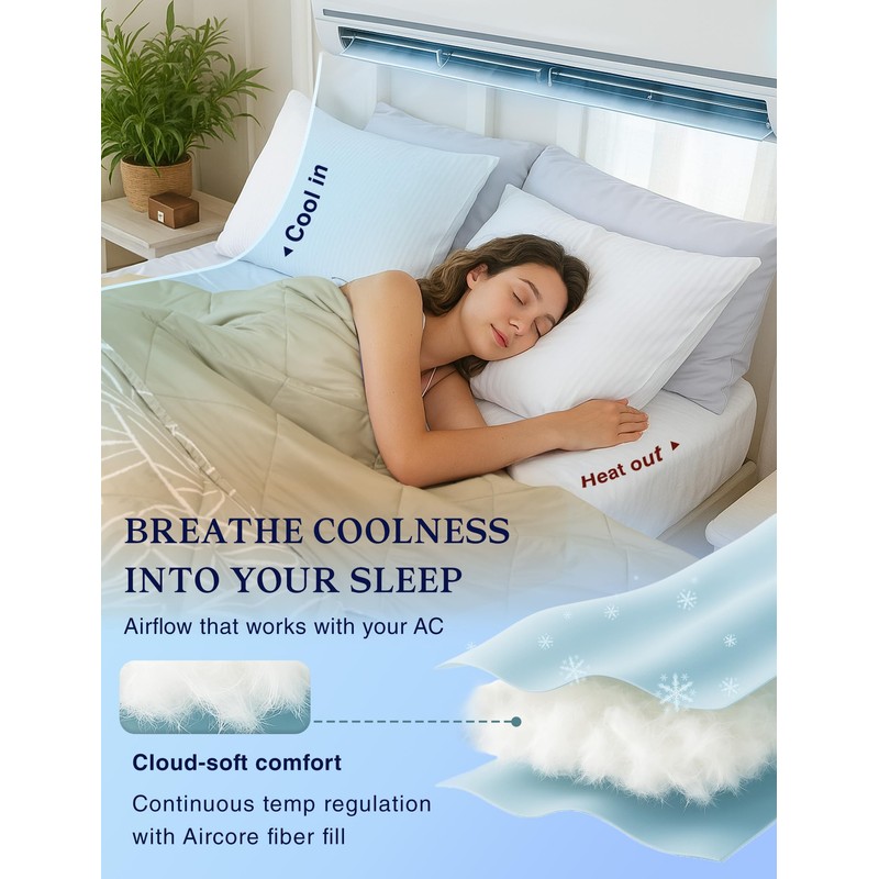 - 【Breathable Cooling Tech】Designed to work with light airflow (fans/AC) for best effect. Hollow fiber filling wicks moisture while preventing overheating—never heavy or stuffy.