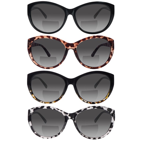 ZONLON 4 Pack Bifocal Sunglasses for Men and Women - Fashionable UV400 Outdoor Safety Glasses, 4 mixed colours