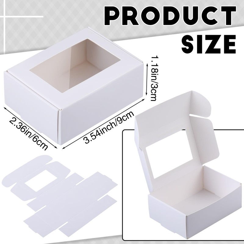 Zonon 100 Pcs Soap Boxes for Homemade Packaging Small Kraft Treat Boxes with Window Present Holder for Candy Bakery Soap Making, 3.7 x 2.6 x 1.4 Inch (White)