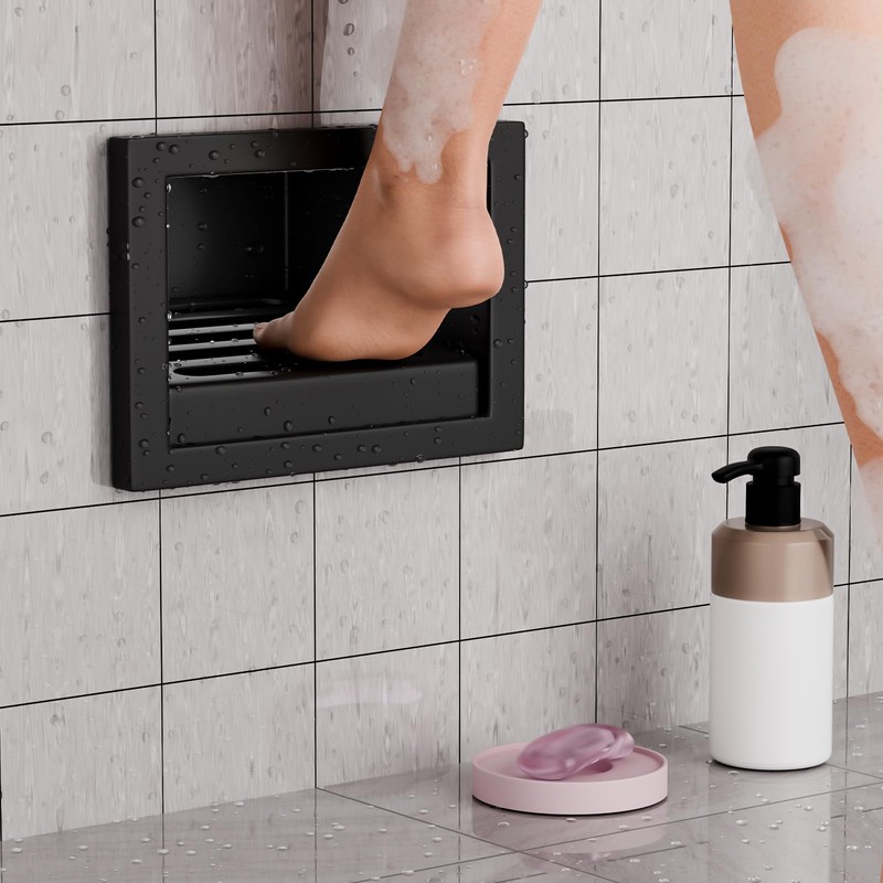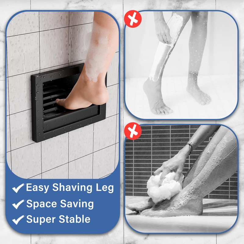 - Recessed Shower Footrest: This shower niche is designed to support your forefoot while you are shaving or wiping your legs. The package includes a PVC anti-slip board to enhance friction and prevent slipping. Footrest niche allows you to keep your body balanced while shaving your legs, especially for the elderly. This wedge board is removable, facilitating easy cleaning