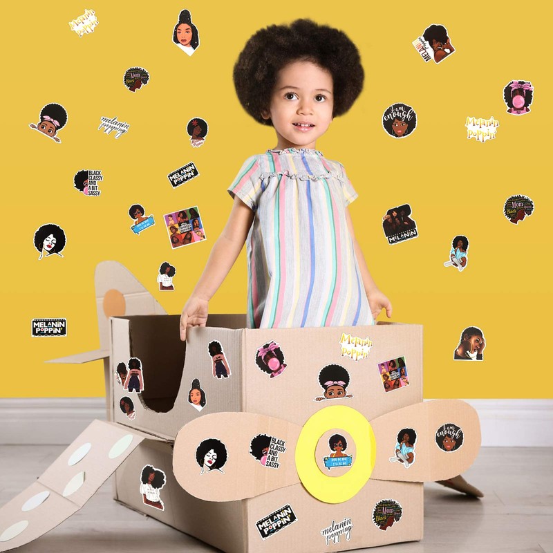 • Melanin poppin stickers: this cartoon graffiti decal has 50 different images specially designed for melanin theme; The black girl sticker is a good choice for melanin fans and teenagers, and it conveys the spirit and attitude of melanin