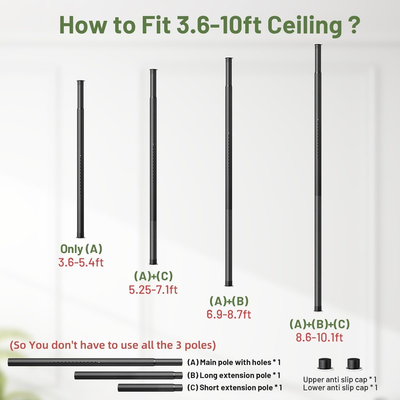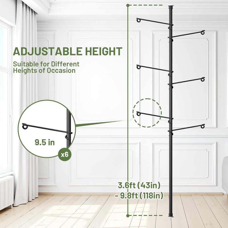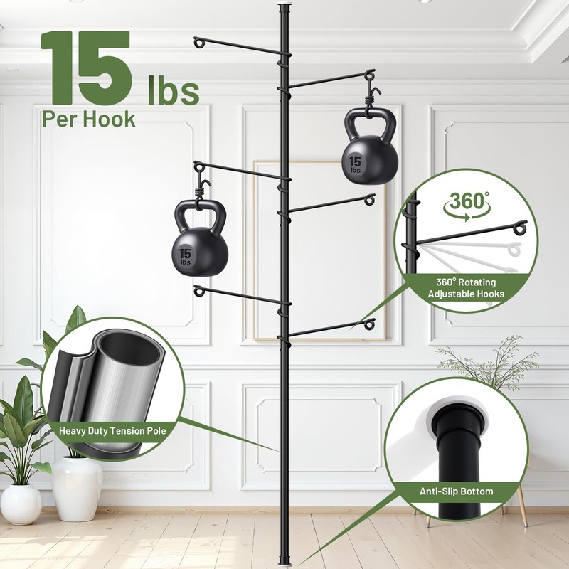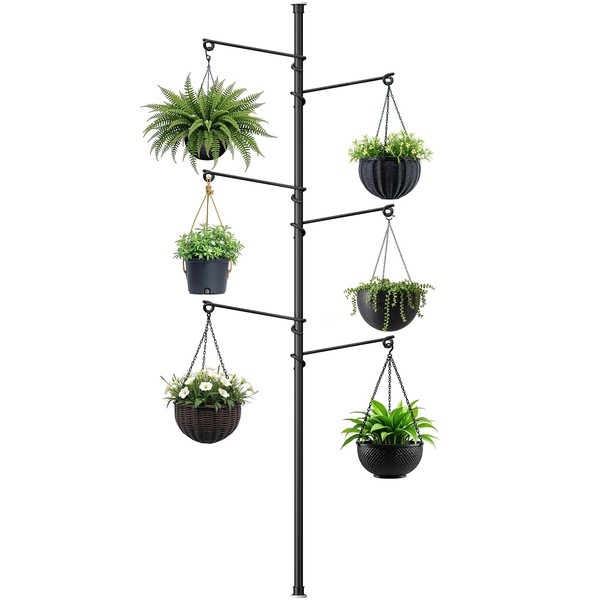 Zononoca Tension Rod Plant Stand, Plant Poles for Hanging Plants Indoor, Metal Floor to Ceiling Hanging Plants Stand, Tension Pole Plant Stand with 6 Hooks (Fit 3.6-10ft)
