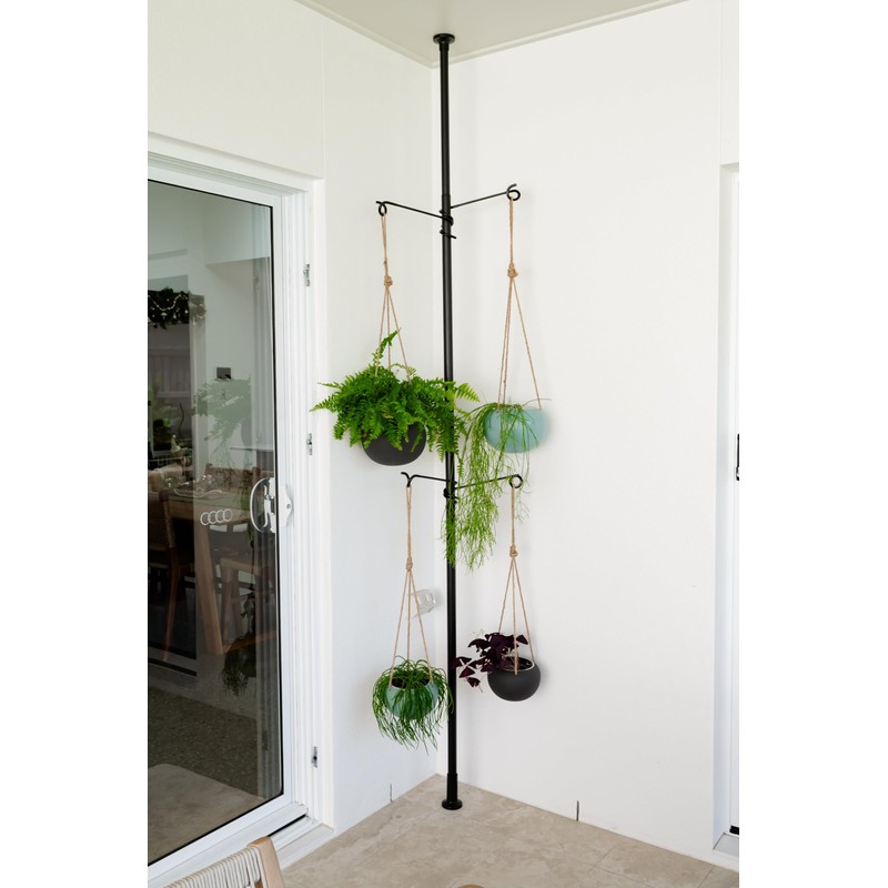 - MAXIMIZE YOUR SPACE, MINIMIZE THE CLUTTER: Free up precious floor space by hanging up to 6 plants in the air! This tension rod plant shelf transforms any corner into a lush vertical garden while adding a touch of natural beauty to your home decor