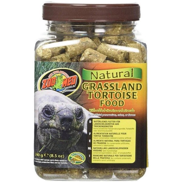 Zoo Med Natural Grassland Tortoise Food provides ideal levels of fiber and protein for the most popular tortoise breeds. Rich in vitamins, minerals and long-stem fibers (a crucial part of healthy tortoise diets), it supports optimal health, growth and shell development.