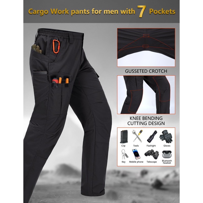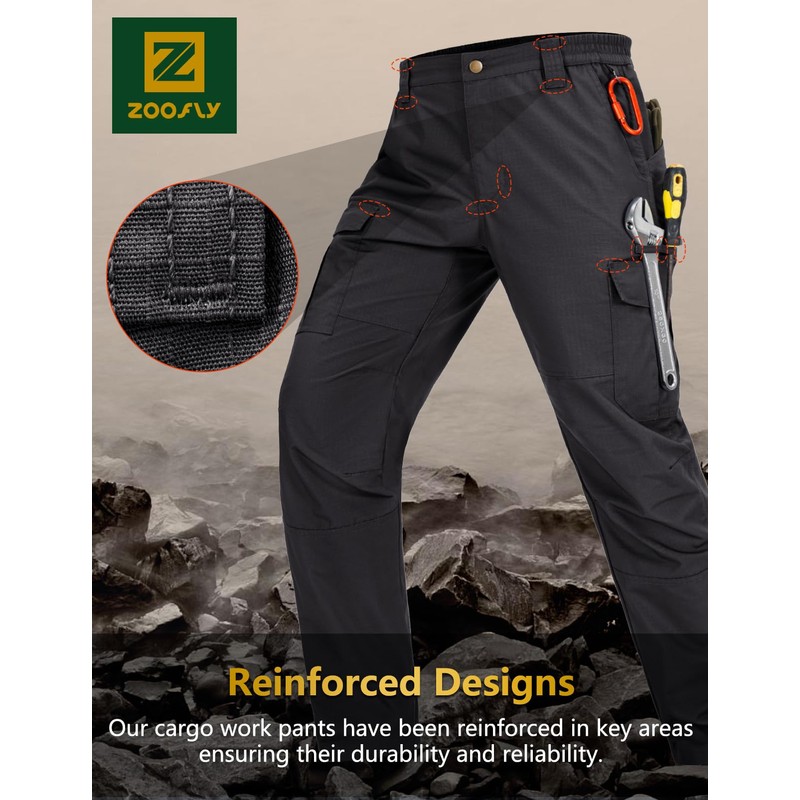 Zoofly Mens Cargo Pants Waterproof Hiking Pants for Men Ripstop Tactical Pants Multi Work Pants with 7 Pockets