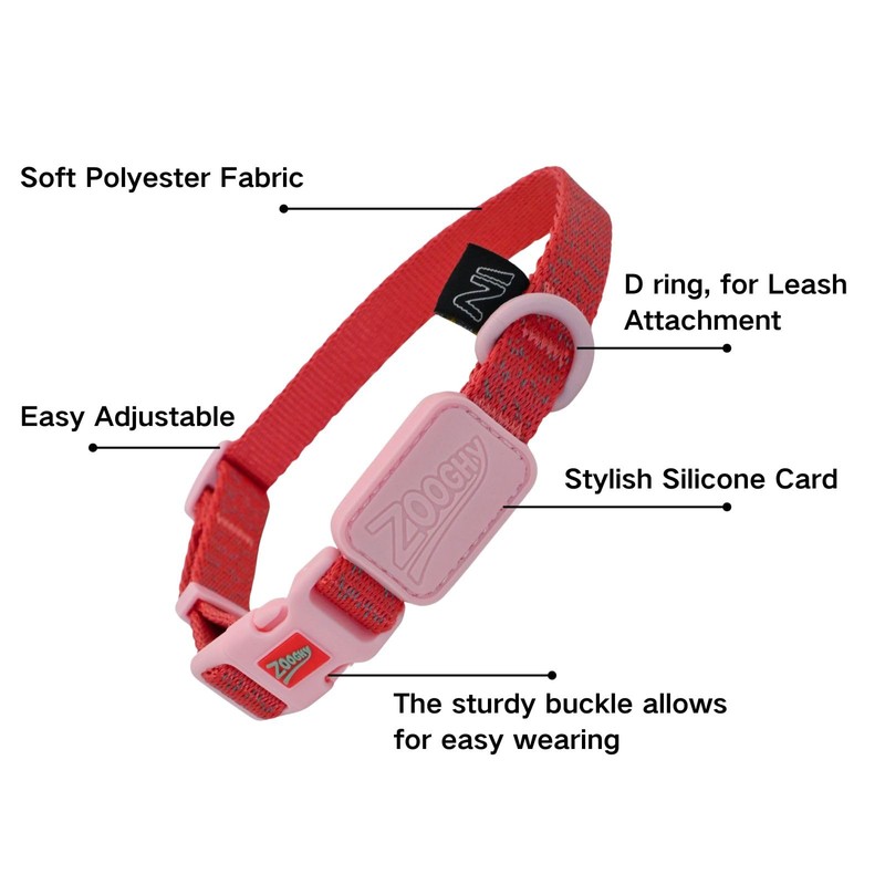 ZOOGHY Personalized Reflective Dog Collar and Leash Set, Adjustable Cute Dog Collar with Durable Leash for Small to Large Dogs, Great for Walking and Training, Pink, M