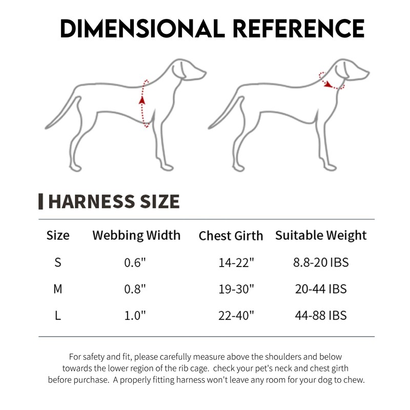 - Easy to put on and take off: This basic dog halter harness has two adjustable buckles can be adjusted to a comfortable position for each dog, and the back buckle allows for easy one-click dressing and undressing.