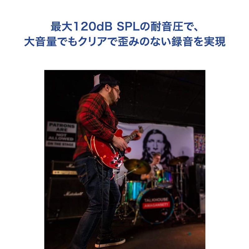 Up to 120db SPL 耐音 pressure ensures a large volume and a clear and distortion free audio recording