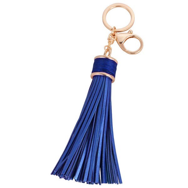 ZOONAI Women Leather Tassels Keychain Car Circle Key Rings Gift Bag Hanging Buckle (Blue)