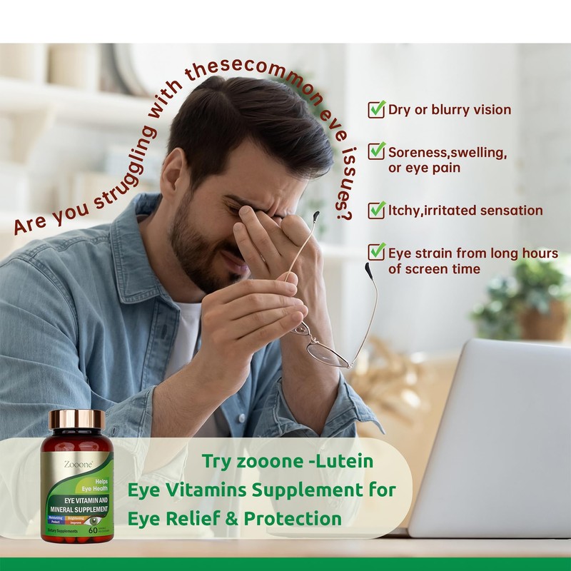 - | Relief for Eye Strain |: Zooone eye pills alleviate dry eyes, blurry vision, and strain, promoting hydration and comfort for prolonged screen use. These lutein and zeaxanthin supplements ensure clearer, stress-free vision.