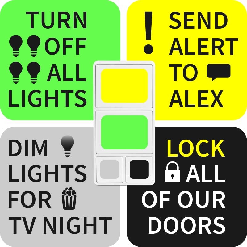- 4 REMOTE BUTTONS: Program each button to activate up to 24 scenes or other devices in your network for one-touch control of your favorite smart lighting presets. Use the buttons to enter "Away" mode on your way out or to turn off all of the lights before you go to bed with a single click.