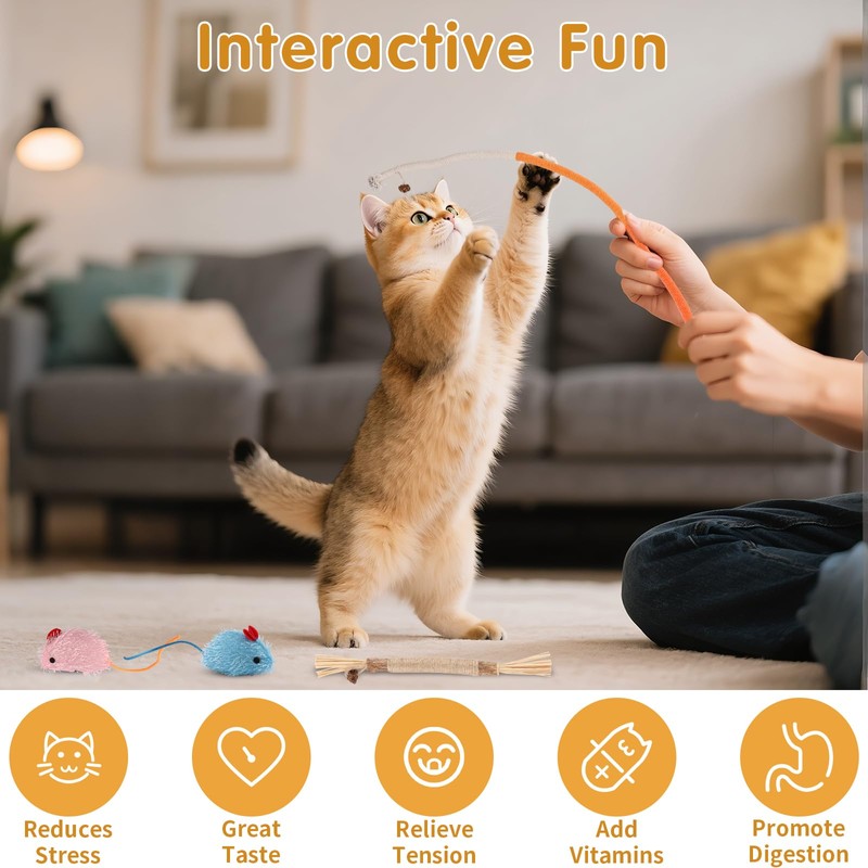 - Vielseitiges Spielerlebnis für jede Katzenpersönlichkeit: Ob verspielter Jungkatze oder gemütlichem Senior - dieses katzenspielzeug interaktiv bietet für jeden Charakter das Richtige. Die Stäbe fördern das Springen, die Schnüre das Kauen und die Mäuse das Jagen. Perfekt für Einzelspiel oder interaktives Spiel mit dem Besitzer. Die verschiedenen Größen und Formen im Set halten das Interesse Ihrer Katze langfristig wach