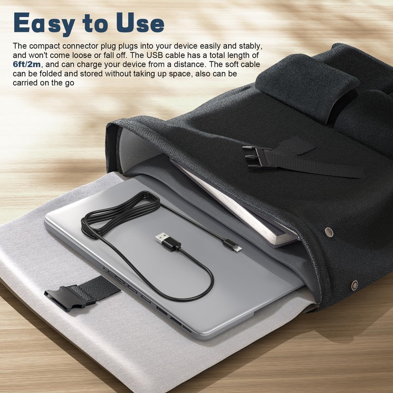 The USB port plugs into computers, desktop PCs, USB port chargers, wall chargers, multi-port charging stations and mobile power, making it the perfect replacement for lost charging cables.