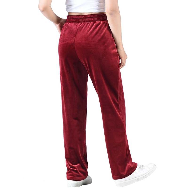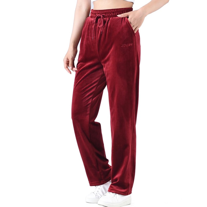 Zoulee Women's Petite Velour Sweatpants High Waist Straight Pants Drawstring Active Pants with Pockets Red S