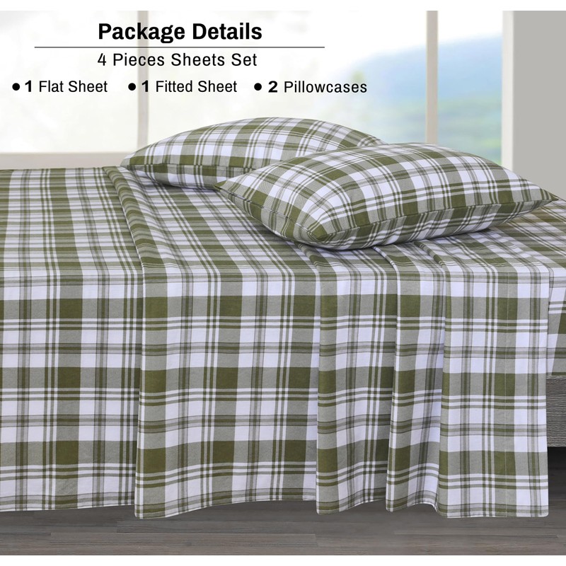 - What’s Included: These 4-Pieces Cotton Flannel Queen Sheet Set combines style and function, available in a range of colors to suit any decor. The set includes a Deep-Pocket Fitted Sheet (80" x 60") with 18" stretch, 1 Flat Sheet (90" x 102"), Two Standard Pillowcases (20" x 30") for a complete, cozy look.
