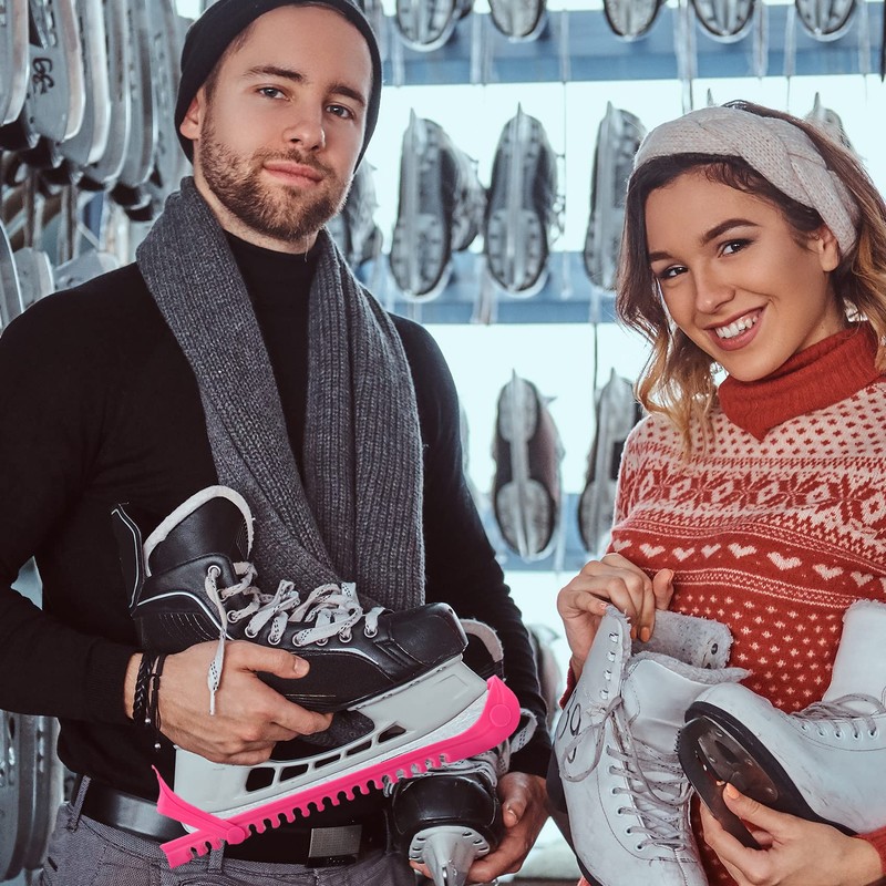 - Package includes: 1 pair of skate guards figure skating. Make your skates not dull when leaving the ice, so that players can walk around on hard surfaces without damaging the edges of the shoes.