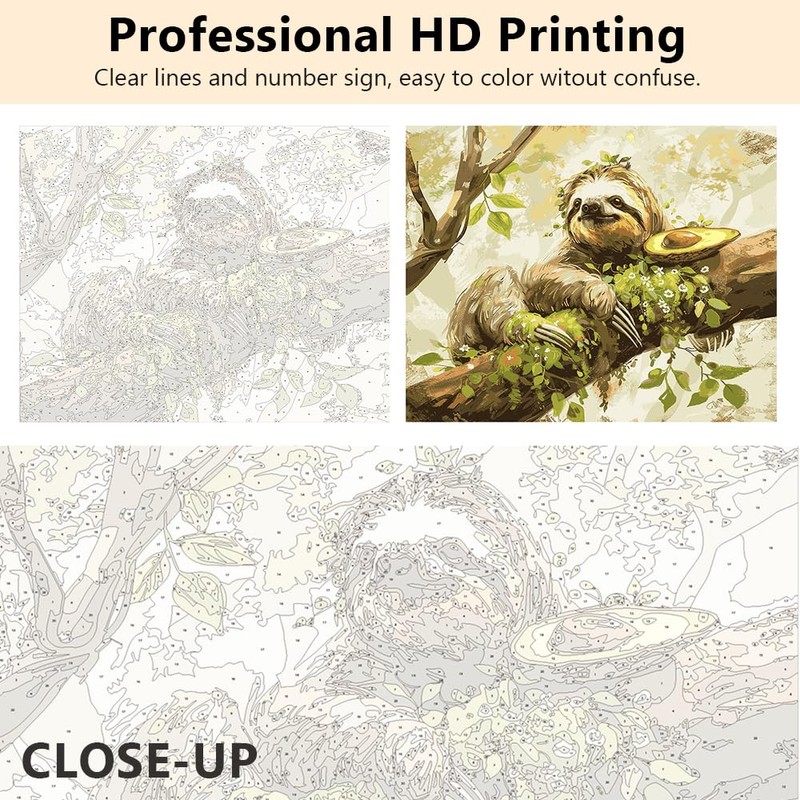 ZOZHI Sloth Paint by Numbers Kits Adults Animals Paint by Numbers Art Sloth on The Tree Paint Numbers Pattern on Canvas Green Shade Scenery Paint-by-Numbers 16x20 Inch