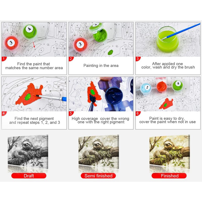- 【Easy to Paint】We provide a sufficient paint set with high color reproduction and brightness. You just need to match the numbers of the pigment with the figures on the canvas, and then fill in the paint accordingly.