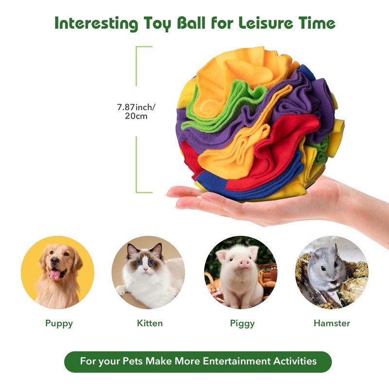 - 【Product Function】Snuffle balls have a stimulating effect on dogs' strong sense of smell and can awaken their innate foraging skills. Sniffing balls are a puzzle toy that can satisfy dogs' curiosity and exercise their sense of smell. At the same time, they are also a stress relieving toy that can release the destructive power of dogs without any place to vent, making them feel busy and tired, thereby relieving stress both physically and mentally.