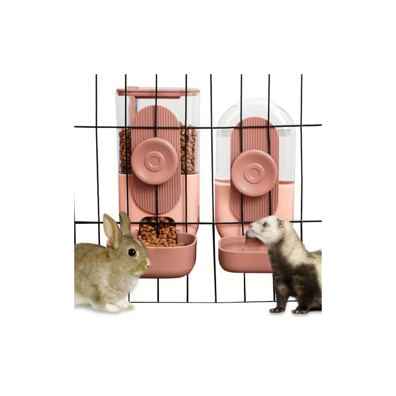 ZQZXD Hanging Automatic Pet Food Water Dispenser, 35oz Rabbit Feeder for Cage Gravity Feeder Siphon Waterer Set for Rabbit Chinchilla Hedgehog Ferret Cat Puppy (Pink)