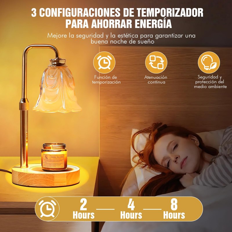 - 【Función de Temporizador】: Equipada con un temporizador conveniente, la lampara calentadora de velas ofrece apagado automático a las 1H/2H/3H/4H, proporcionando seguridad y tranquilidad mientras disfrutas de la fragancia.