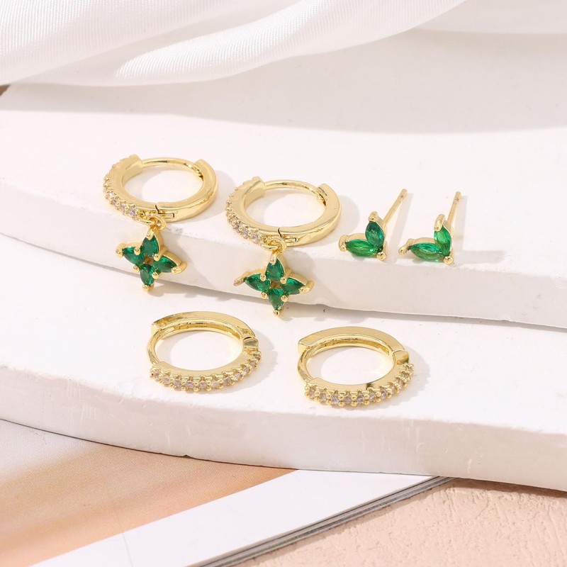 - Sparkling Cartilage Hoop Earrings Design: 3 pairs a set, this cartilage hoop earrings set include a green cz stud earrings, 2 green cz huggie hoop earrings, paved with glittering cubic zironia, wear them alone or stacked to create your own unique fashion look at different occasions. Huggie hoops inner diameter:9mm/10mm.