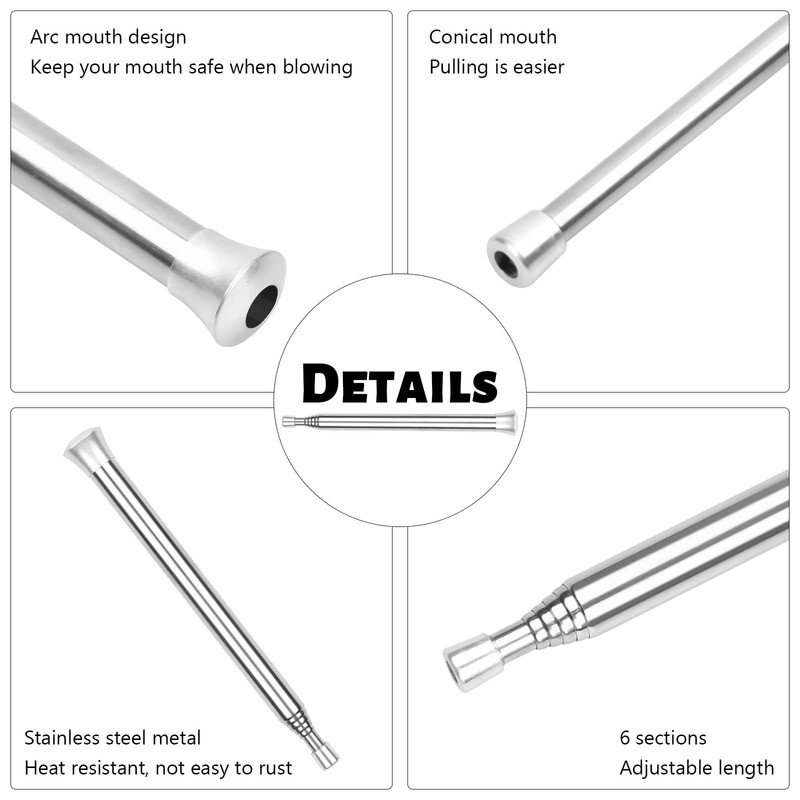 - đ„ăTelescopic Blowing Tube FeaturesăThe fire blower pipe is retractable, it can keep your face and eyes away from smoke and heat. The improved design at both ends will not hurt your mouth, and you don't need to blow too hard, you can concentrate oxygen for the fire.