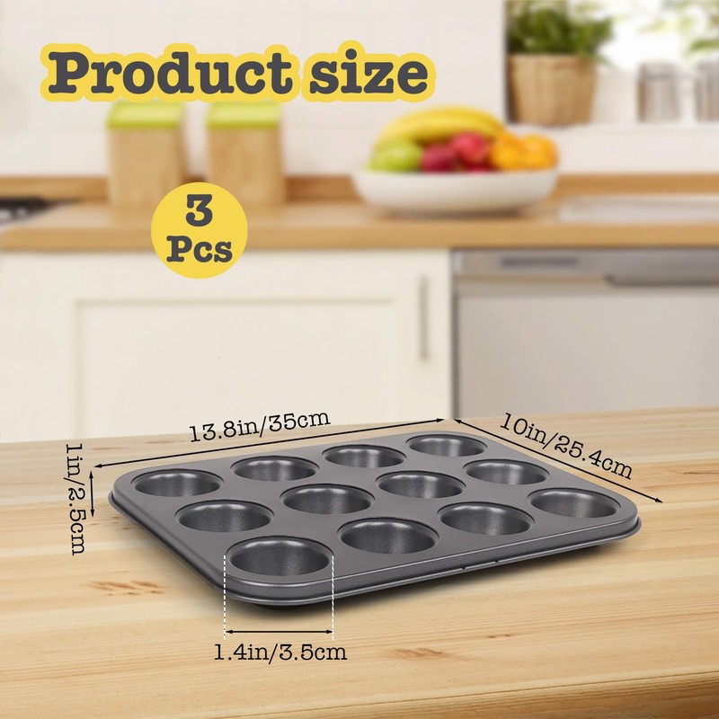 - Exclusive Value Muffin Pan Set - This muffin tins muffin pans nonstick includes three 12-cup muffin pans, designed to meet your daily baking needs for muffins and cupcakes. Additionally, the flexible and stackable design allows for convenient storage by stacking with similarly sized molds after use