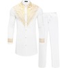 ZSJR Mens African 2 Piece Set Metallic Traditional Suit Gold Stamp Printed African Dashiki Shirt and Pants Outfit, White, X-Large