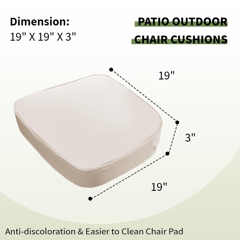 ZSLUKEJJ Waterproof Patio Chair Cushion - 19"x 19"x 3" Outdoor Seat Cushion for Patio Furniture with Adjustable Ties, Durable & Comfortable, Beige