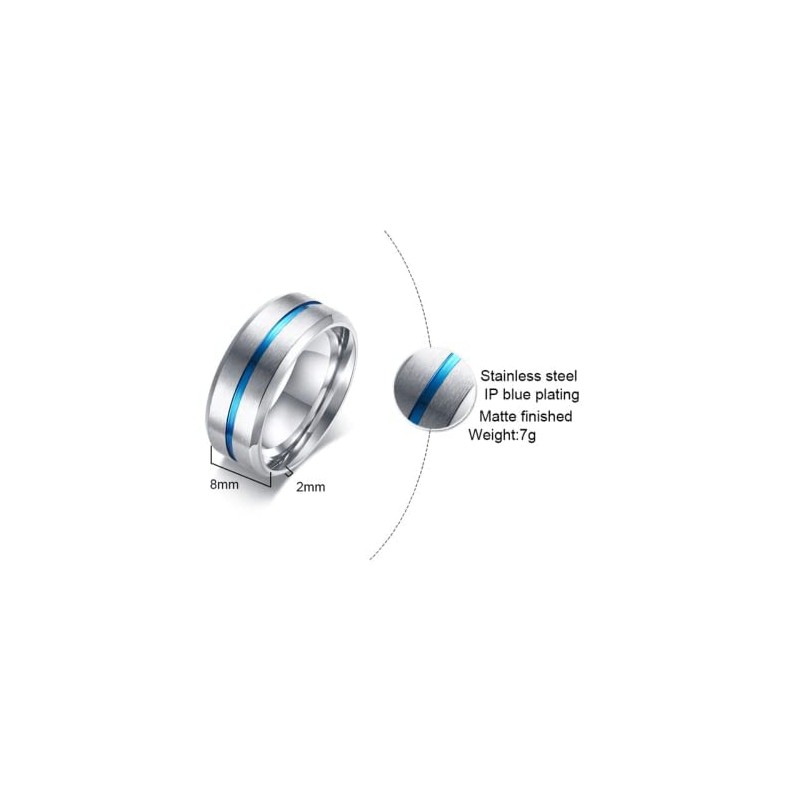 - Blue ring size: size 8, 9, 10.11 or 12 (corresponding ring circumference 57 mm, 60 mm, 63 mm, 65 mm, 67 mm). Stainless steel ring type is simple.
