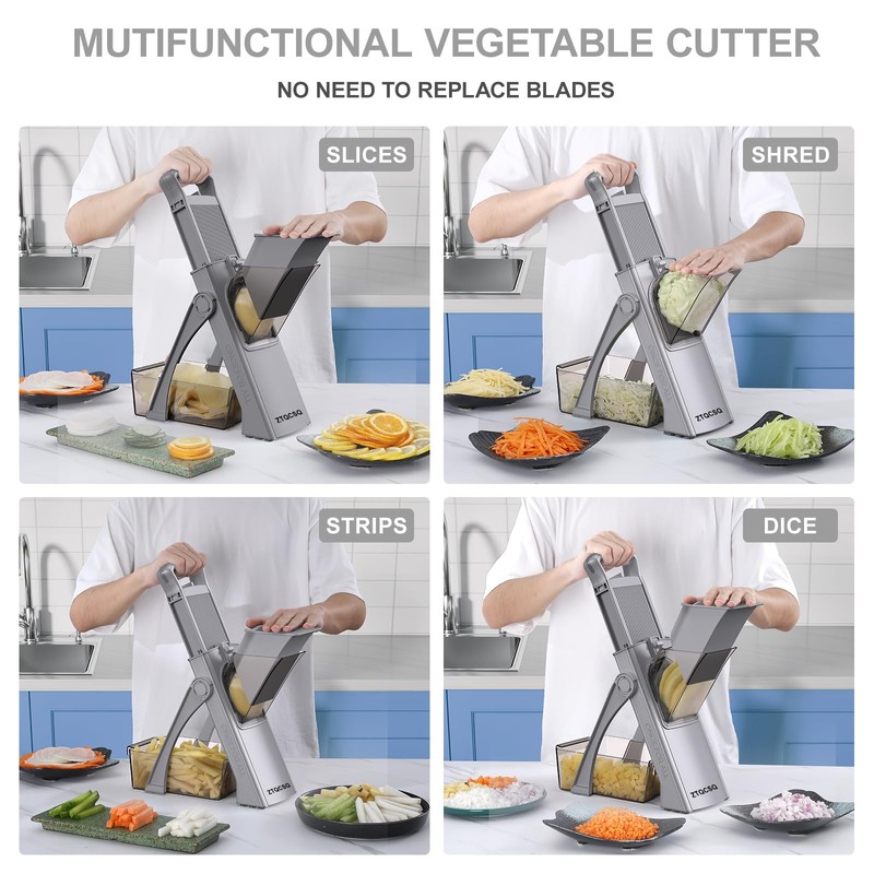 - 1. 【2025 Upgraded Versatile Vegetable Chopper - High-grade Gray】: Our ZTQCSQ Mandoline Slicer Plus Size, also known as a vegetable chopper, features a larger feeder, increased capacity, and a more elegant design. This multi-functional chopping artifact makes meal preparation effortless, allowing you to slice, dice, and julienne a variety of vegetables with ease. Save time and effort in the kitchen while achieving professional results. Gifts comes with a cleaning brush and Handheld Spiralizer.