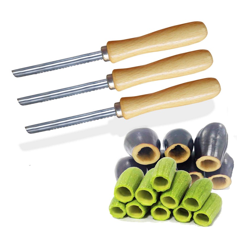 Zucchini Squash Vegetable Corer 3 pcs Corers Stainless Steel Core Remover Tool Kitchen Stuffed Vegetables Veggies Seed Remover Remove Seeds Eggplant Cucumber 8" Long Coring Tools Gadgets Drill
