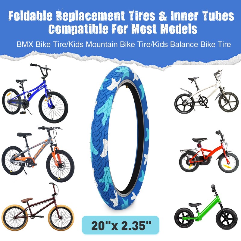 ZUKKA 20 x 2.35 Bike Tire 1/2 Pack 20 inch x 2.35 BMX Bike Tire Folding Replacement Tire for MTB Mountain Bike, BMX Bicycle Commuter Bike (Blue CAMO, 2 Tires+2 Tubes+2 Levers)