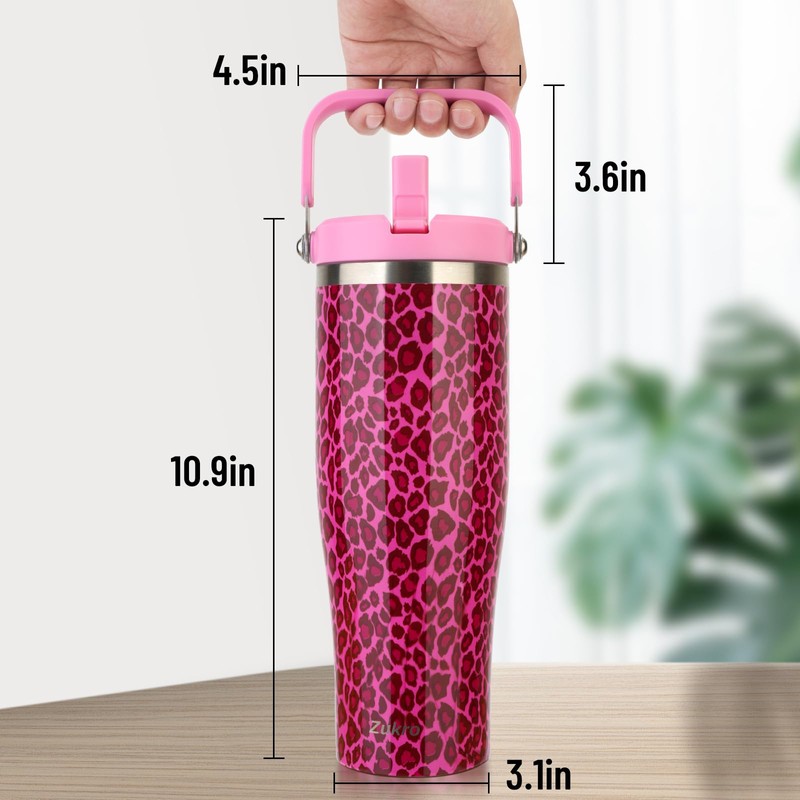 - FULLY LEAK PROOF LID AND EASY CARRYING TOP HANDLE: The insulated stainless steel to-go tumbler is designed with a flip-top, screw-on closure lid to prevent unwanted spills, a ergonomic, rotating handle lets you quickly grab this tumbler with folding straw and go. No more worry about spillage when your threaded large tumbler tipps over, just need to snap the closable straw shut and you are done.
