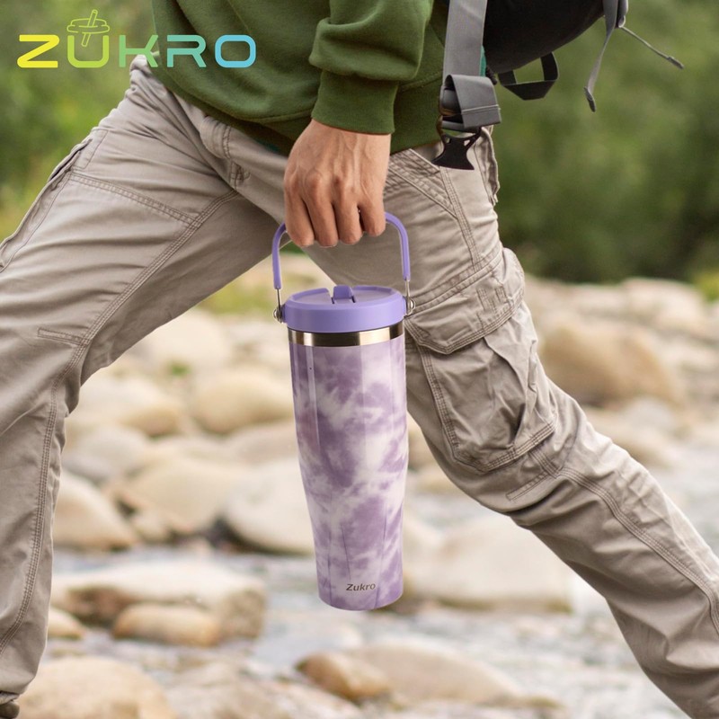 Zukro 50 OZ Tumbler With Flip Straw, Leak Proof Triple-Wall Stainless Steel Insulated Cup With Top Handle, No Sweat Outdoors Water Bottle Fit in Cup holder, Keep Drinks Cold 30 Hours