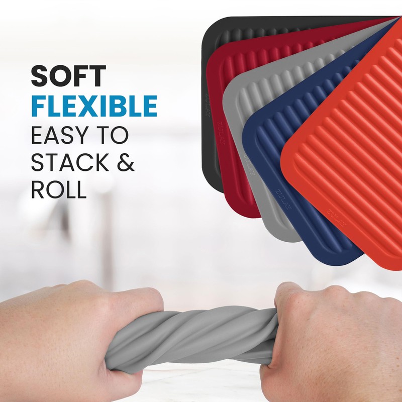 - EASY TO CLEAN & STORE: Made with a waterproof, stain and odor-resistant material, these silicone trivet mats are super simple to clean. You can hand wash these or pop them in the dishwasher for convenience. The soft, flexible material makes these hot pads for kitchen easy to roll and stack.