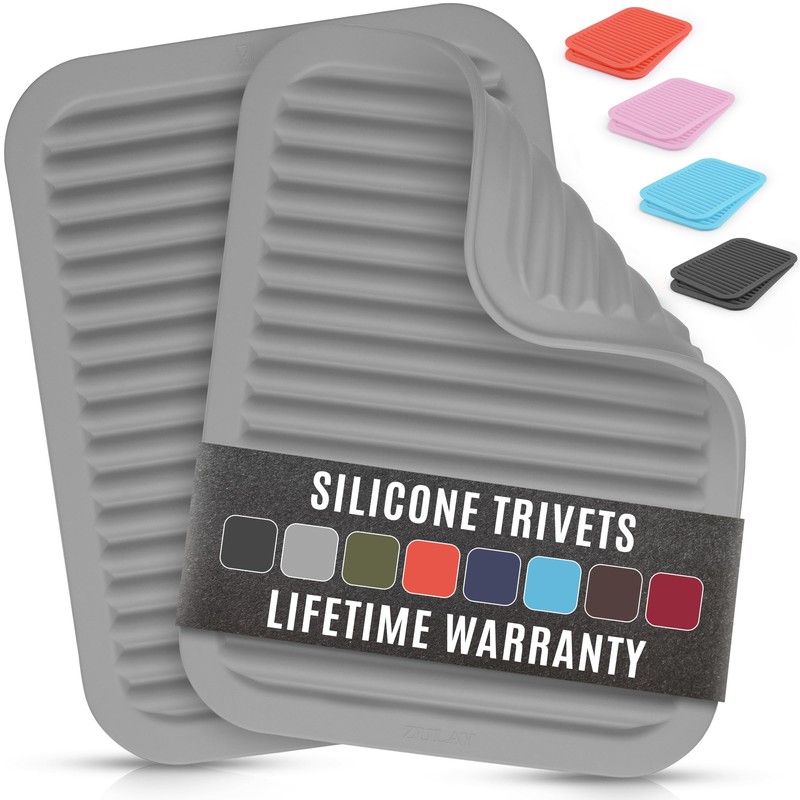 Zulay 2 Pack (9"x12") Silicone Trivets for Hot Pots and Pans - Multi-Purpose & Versatile Trivet Mat - Heat Resistant Silicone Trivet - Durable & Flexible Hot Pads for Kitchen Counter - Gray