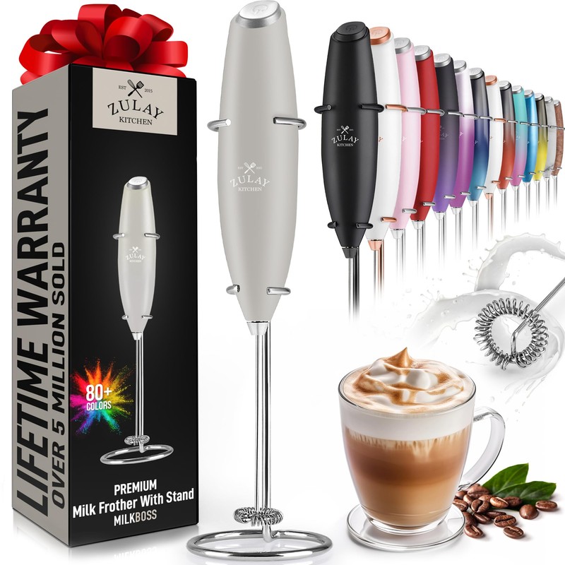 Zulay Kitchen Powerful Milk Frother Wand - Ultra Fast Handheld Drink Mixer - Electric Whisk Foam Maker for Coffee, Lattes, Cappuccino, Frappe, Matcha & Coffee Creamer - Milk Boss Gray