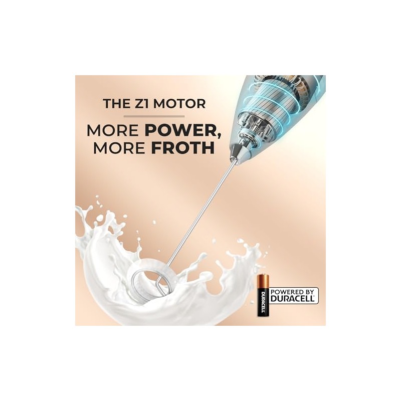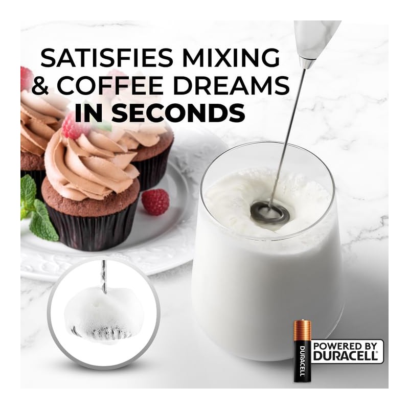 Zulay Kitchen Powerful Milk Frother Wand With 4 AA Duracell Batteries - Ultra Fast Handheld Drink Mixer - Electric Whisk Foam Maker for Coffee, Lattes, Cappuccino, Matcha & Creamer -