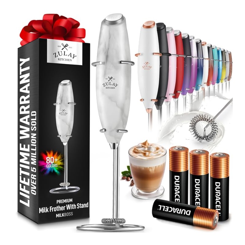 - PROVEN AND TRUSTED QUALITY: Made with high-quality materials, this coffee frother handheld works on all types of milk—whole, almond, soy, cashew, or cream. Backed by the Zulay Lifetime Guarantee, it won’t rust or break.
