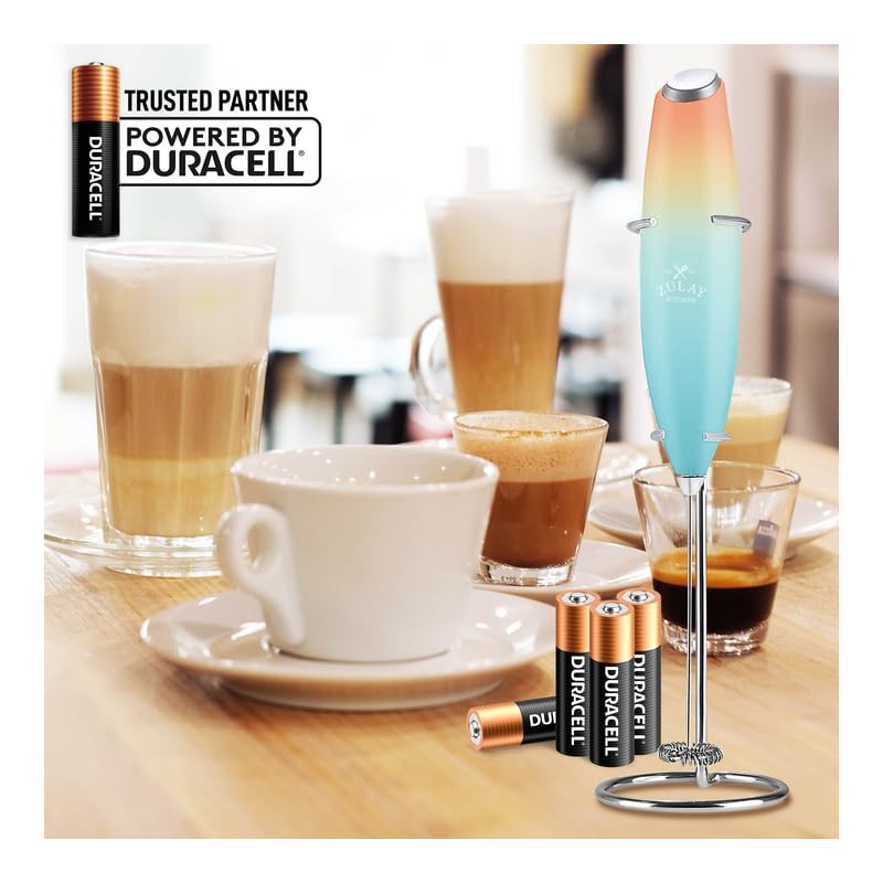 Zulay Powerful Milk Frother (4 Duracell Batteries Included) - Handheld Milk Frother Wand Drink Mixer for Coffee - Powerful Milk Foamer for Cappuccino, Frappe, Matcha & Coffee Creamer - Sunrise