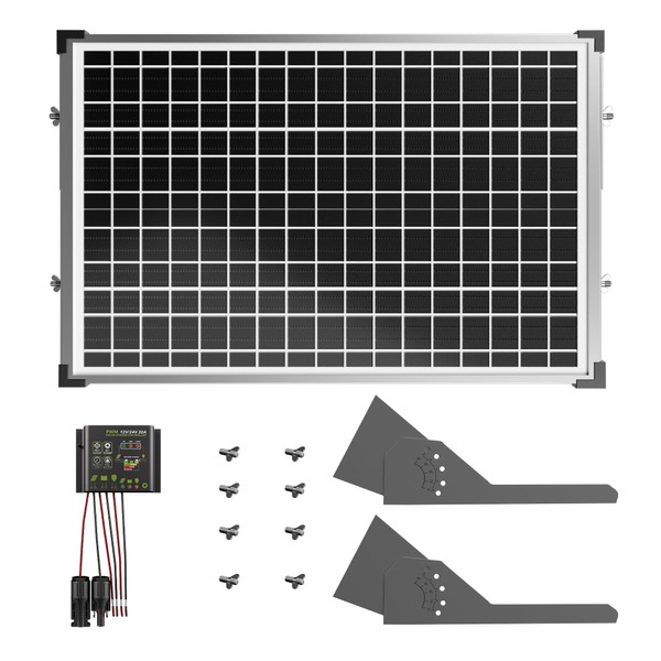 ZUMI Gate Opener Solar Panel, 30W Solar Panel for Automatic Gate Opener, IP67 Door Opener Solar Panel Kit with Tempered Glass Tubular Mounting Bracket, Solar Power System with Monocrystalline Panel
