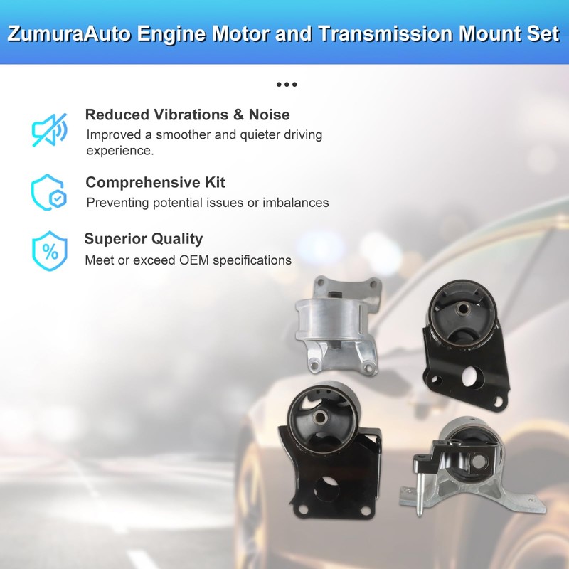 ZumuraAuto Set of 4 Transmission Engine Motor Mount, Compatible with 2002-200...