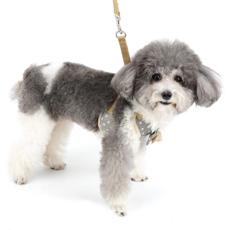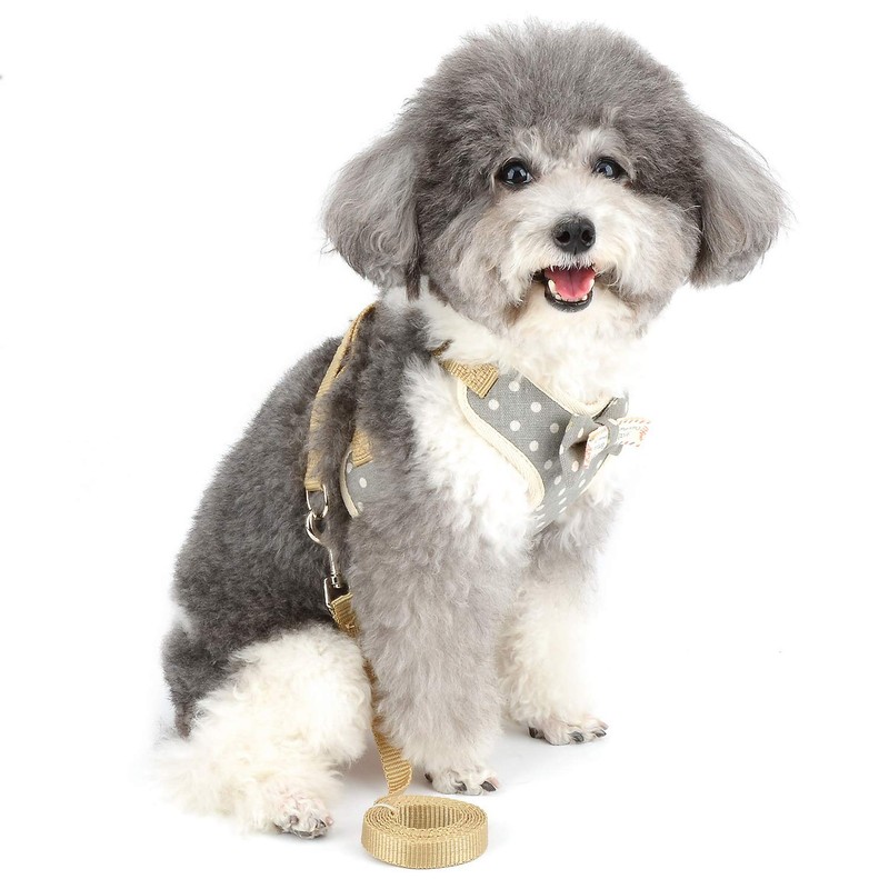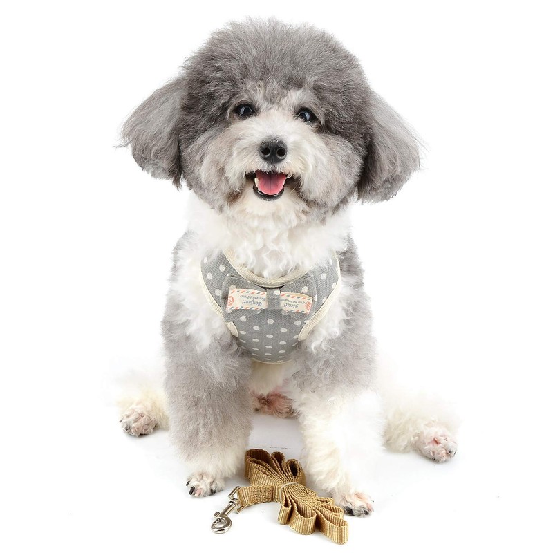 ZUNEA Dog Harness with Lead Small Dogs Escape Proof Puppy Cat Vest Harnesses Walking Adjustable Cute Polka Dot Kitten Harness with Bow Soft Mesh Padded Chest Harness for Grey M