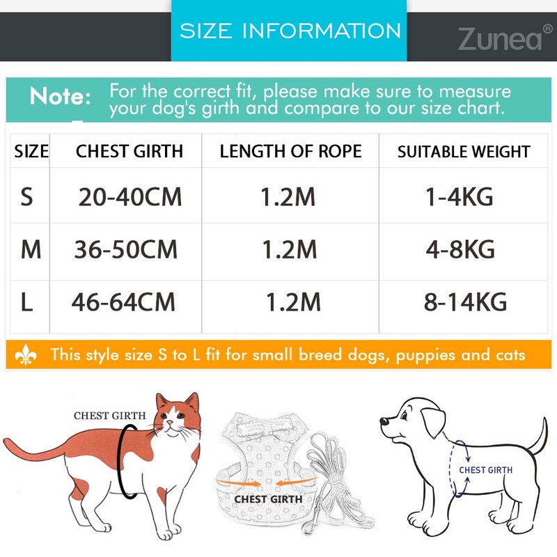 • Ideal for small dogs, cats, puppies, Chihuahua, Shih Tzu, miniature poodle, Yorkshire Terrier, Pomeranian, Bichon Frise etc. for daily walking, outdoor running, training, etc.