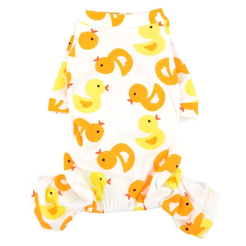 Zunea Small Dog Jumpsuit Soft Cotton Romper Puppy Sleeping Clothes Adorable Yellow Duck Printed Four Legs Pajama Clothes for Pet Cat Puppy S