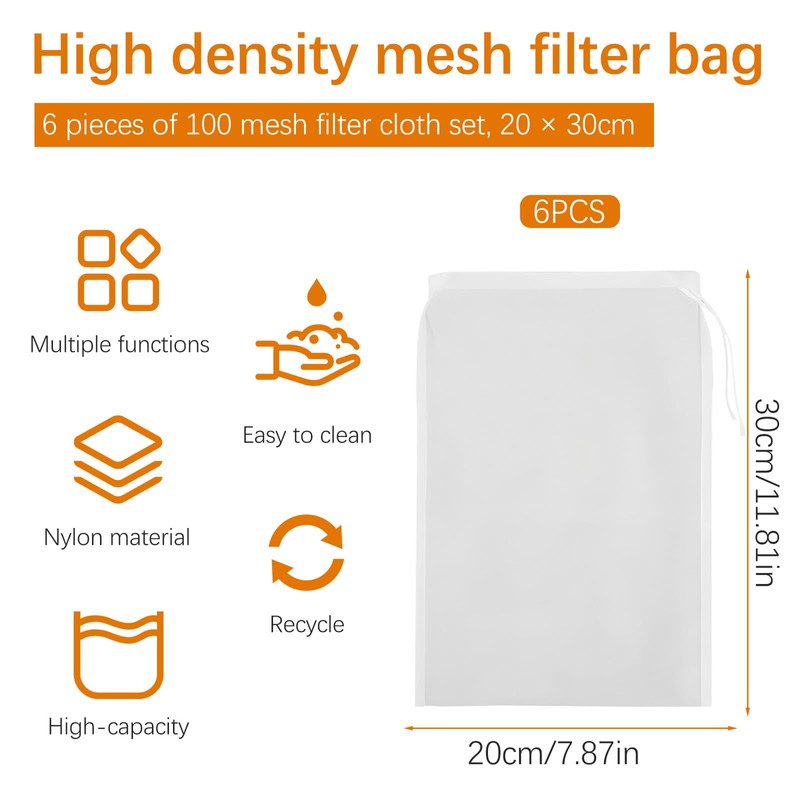 - Nussmilchbeutel Verpackung: 6 Stück à 100 Maschen 20 x 30 cm Passiertuch Wiederverwendbar.