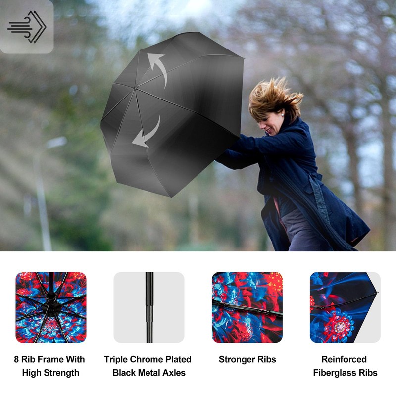 - COMPACT & PORTABLE: Reverse folding umbrella is only 11.5 inches (29cm) in the folded state, and the weight is only 0.86lb. It is lightweight and portable. Works great as a travel umbrella, pocket umbrella, small umbrella for purse, backpacking umbrella, umbrella for handbag, and car umbrella, etc. Ideal for travel, business, camping, or daily life using.